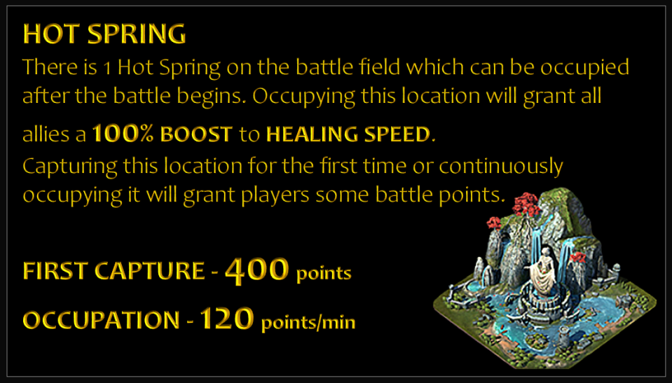 I lost one of my three deployments, then I saw many DEP warriors fighting on the outskirts of the Hot Spring. The enemy needs to come into the blue circle to take the Hot Spring. Our new leading team commands all of us to get into the Blue Circle!! to take Hot Spring. FDH are disappearing one by one, wave after wave of armies are poring in the Hot Spring.
