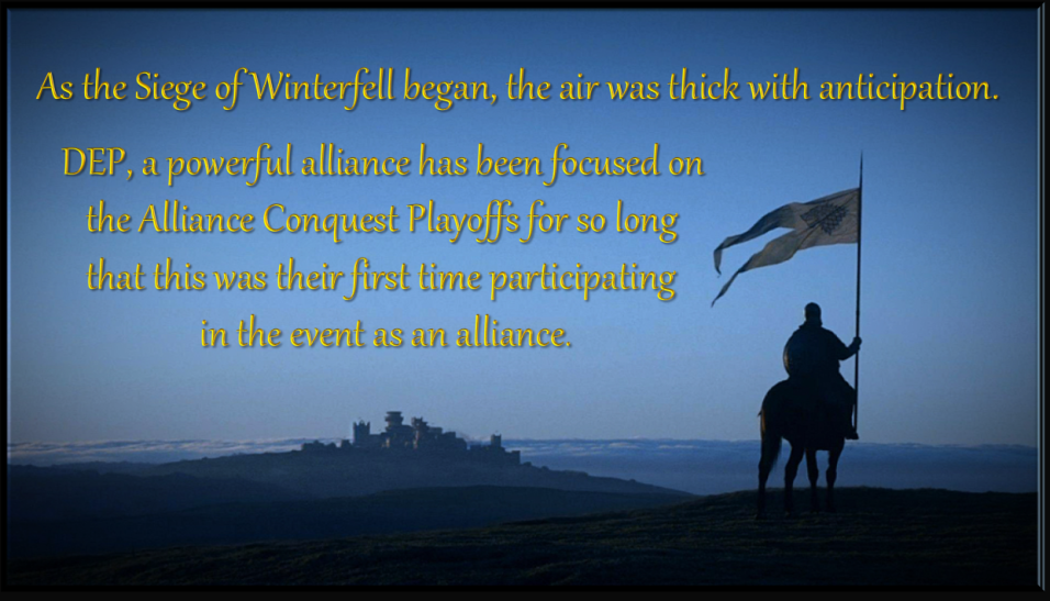 As the Siege of Winterfell began, the air was thick with anticipation. DEP, a powerful alliance, has been focused on the Alliance Conquest Playoffs for so long that this was their first time participating in the event as an alliance.
