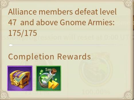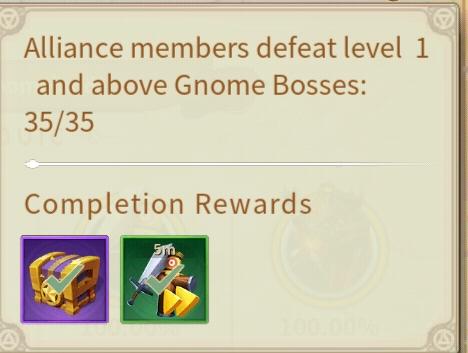 Here players of the alliance have to kill X amount of gnome army's of required level to finish this task