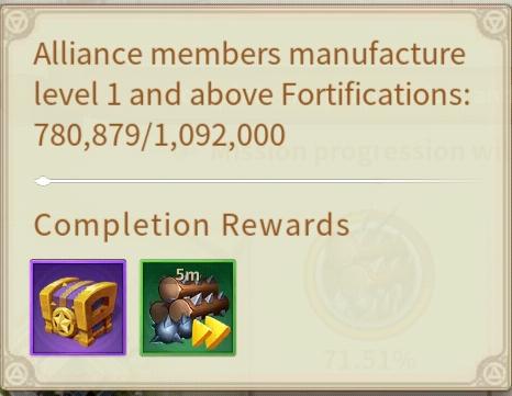 Here alliance members have to Manufacture X amount of Fortifications to finish this task