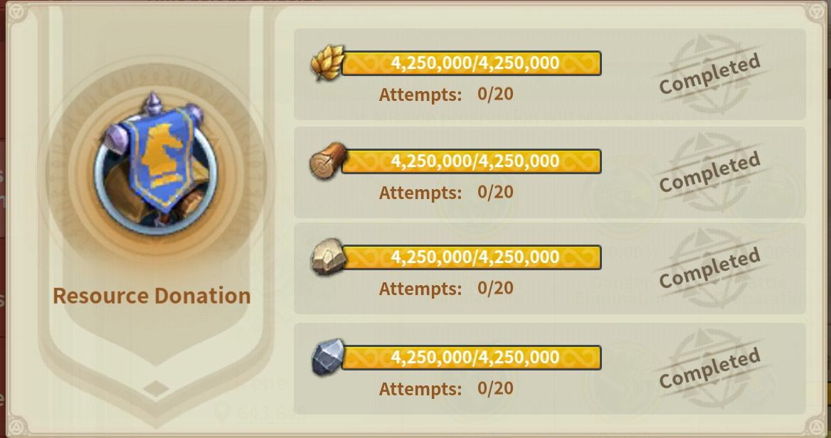 Here a X amount of players have to donate X amount of resources to max the amount and finished this