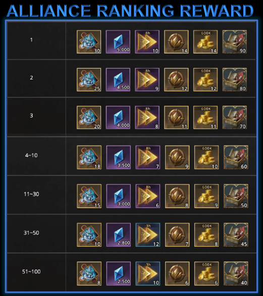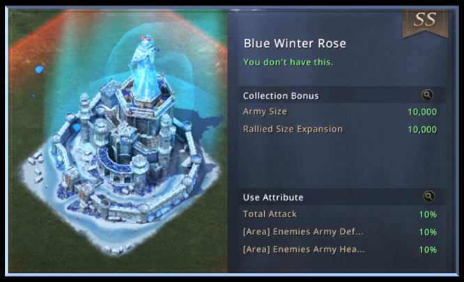 Blue Winter Rose skin gives a 10k Army size and a 10k Rally size. It’s very attractive skin to have. Individual Elimination Ranking gives some fragments of this skin, but the new management team pushed to play as an alliance to get the special skin fragments for their alliance members from the Alliance Ranking rewards.