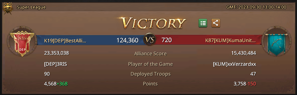 DEP managed to reach their goal of 120k points and finished the second match victorious.