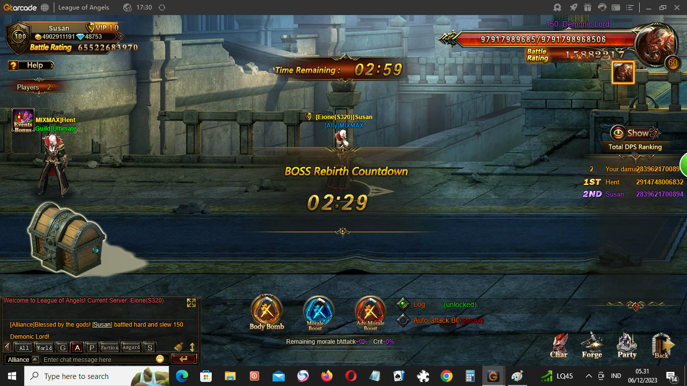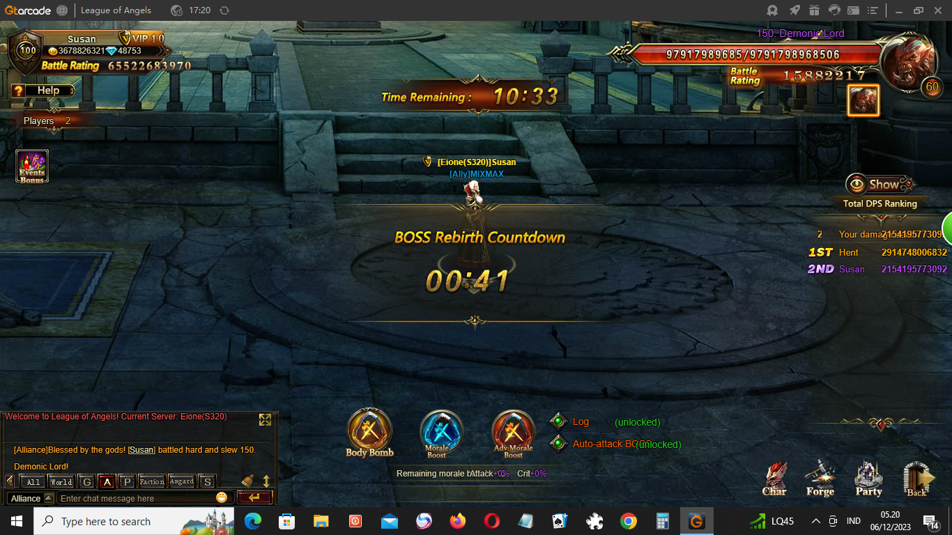 Please repair the bug in the world boss event . I always get long waiting for the boss rebirth with short time to get 70b . it is ridiculous to wait 45s till 2.30 minutes for boss rebirth . Please repair this bug and grats for the 10th anniversary . Thanks Susan S320 Eione