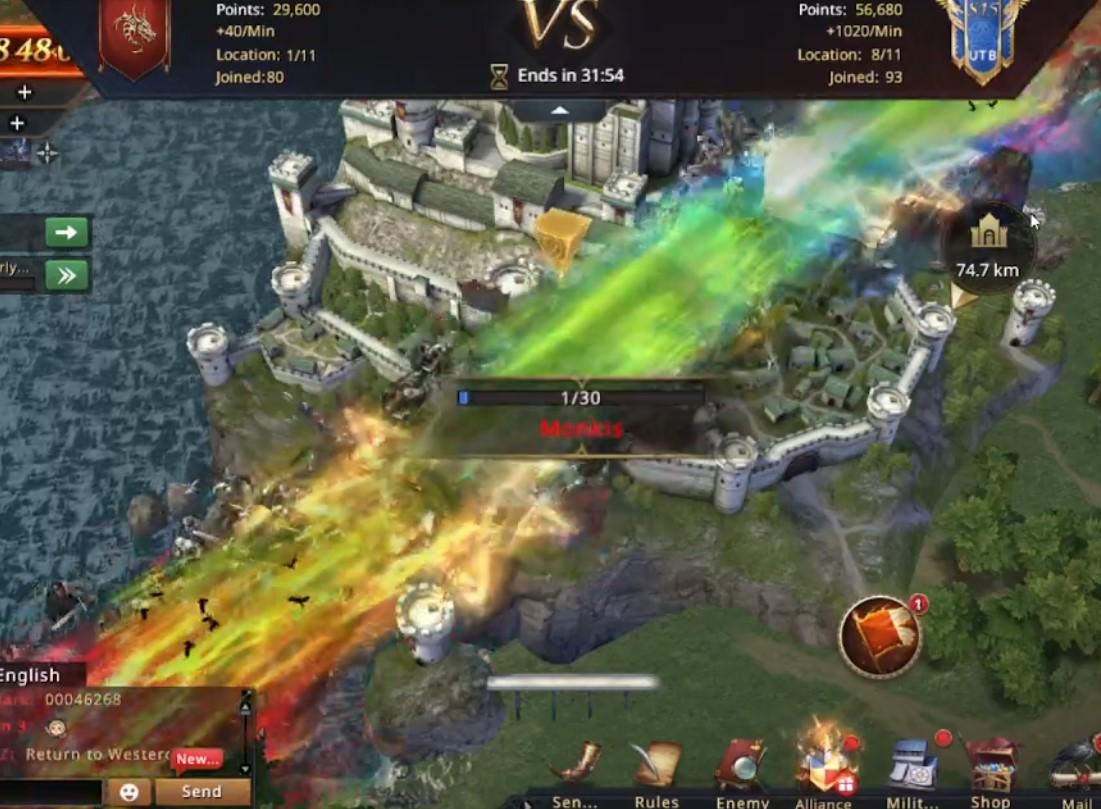 The ports opened soon after and UTB were once again ahead of us, picking up both ports easily. Belore called for rallies on the Mother as we needed the building if we were to fight back and have any hope for a comeback. Our rallies hit hard, bleeding UTB of troops but despite trying two waves of rallies we couldn't evict them from the objective. So, we waited for and then picked up Casterly Rock instead. With Belore picking it up we didn't need to swap the objective making it a little easier to hold.
