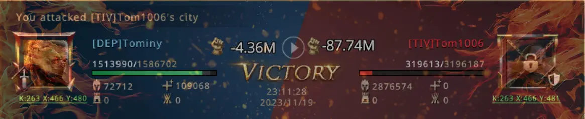His fear didn't fulfill, Lord takemeonePro wasn't a trap castle nor was he laying a trap for Tominy. The losses for TIV alliance member were huge, leading to more than 5 million troops dead! KRISTENQUEEN still stood on the top of her walls, watching all the bloodbath happening from far away and decided to not take any action against the invader.