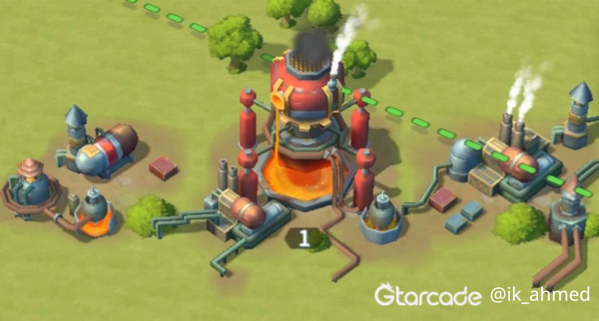 يجب عليك الهجوم على المبانى المبانى الجانبية وتحطميها لكى تستطيع الهجوم على الفرن الذر فى المنتصف