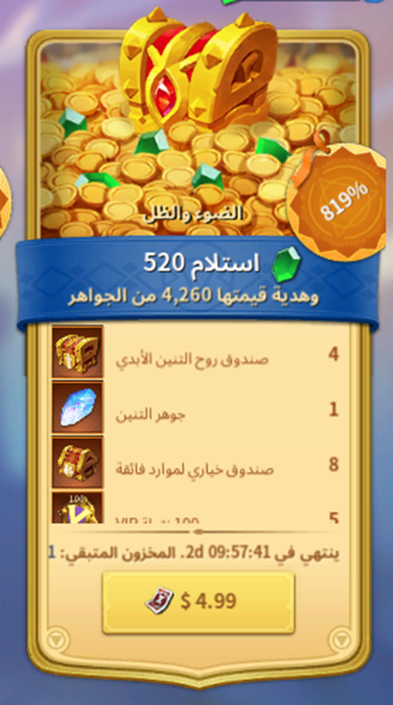 يتم احتساب باقة ال50$ بها بأن جوهرة التنين الواحدة تكون سعرها 10 دولار