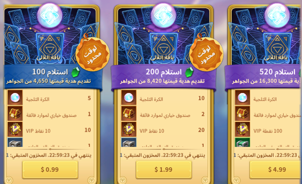 يتم احتساب باقة ال100$ بها بأن جوهرة التنين الواحدة تكون سعرها 14.2 دولار