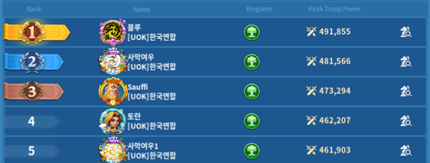 Server 96 is the first of several Korean-speaking servers. The previously relocating server is home to UOK of the Vitas faction. The alliance holds 52 players with a total of 94 million power. The top five have powers of 491k, 481k, 473k, 462k, and 461k fielding Earth, Earth, Water, Water, and Water teams, respectively. Only eight players are above 400k and most of them are running Earth teams which means there aren’t any spenders on this server. UOK hasn’t gotten any cities in LoF in two seasons and has a 0%-win rate in the event. There’s not much going for the server. The migration limit is capped at three million and the server hasn’t crowned a king in over a year. Spend your Space Portals somewhere else.