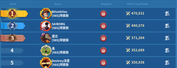 Server 98 was a relocating server during the migration event. The server houses 98S, an alliance in the Ruslan faction. 98S has 36 players with a total of 58 million power. Only two players are above 400k at 470k and 440k. Everyone else is significantly weaker and the majority uses Water teams. The Chinese alliance didn’t take any cities in the last two seasons of LoF and are not able to capture any in their current season as well. There hasn’t been even a whisper in the chats in over a month so it’s safe to say that the number of active players still left on the server can be counted on one hand. Surprisingly, the leaders of the alliance are still diligent in assigning governors. They are incapable of crowning any kings and the migration limit is set at two million power. This server is beyond saving.