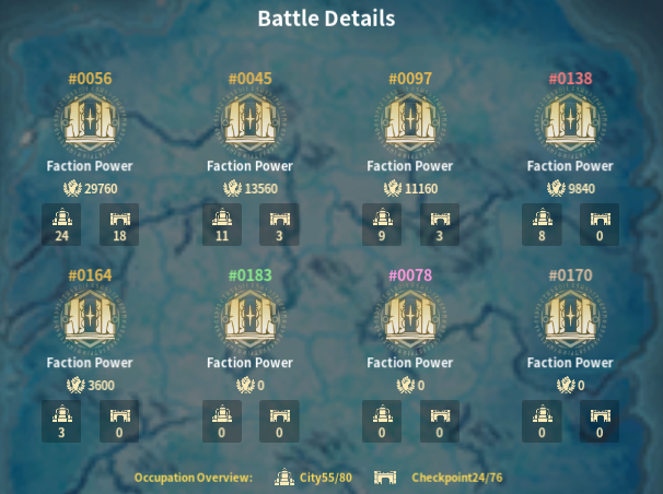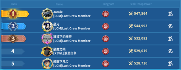 Lastly, Server 100 is a red-colored alliance where Last Crew Member(LCM) lives. The server used to be home to SKY, an alliance with several massive spenders and some of the most powerful players in the game. Most of SKY has since moved to Server 136 and became what’s known as AOSK today. Despite SKY leaving, 100 still has a good number of strong players. The top five players are 528k and above. They use a myriad of marches and one even has an Athena. The team’s LoF results have been wildly inconsistent. They are capable of winning if they get matched with other medium-sized servers but do not have the firepower to put up a fight against some of the larger servers like 56 or 105. They can be a good supporting cast for servers looking for a win. LCM won once in their last three seasons and generally ends the event with at least 10 cities, enough to get the maximum faction points for rewards. LCM often opts to stop doing COR after reaching 200k Energy Cubes and has no problem crowning kings. The chats are generally active. They are weaker than Server 97 but fit the same mold.