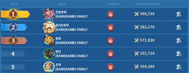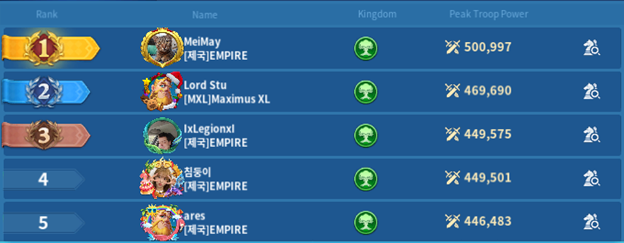 Server 97 is one with a storied past. The Korean-dominated server is home to the Ruslan alliance KANBU FAMILY(KAN0). The alliance comprises of players who mostly speak Korean. KAN0 has 55 players with a total of 154 million power. At its peak, KAN0 was one of the strongest servers to grace the game. Unfortunately, many of their top players have moved on. Even so, they are a force to be reckoned with relative to other small to mid-sized servers. The top five range from 550k to 595k. The players field Lightning and Earth marches. One of them even has Loki in his Earth variant. The server has a whopping 20 players with over 500k power and 48 players with over 400k power. 97 is arguably the strongest mid-sized server.