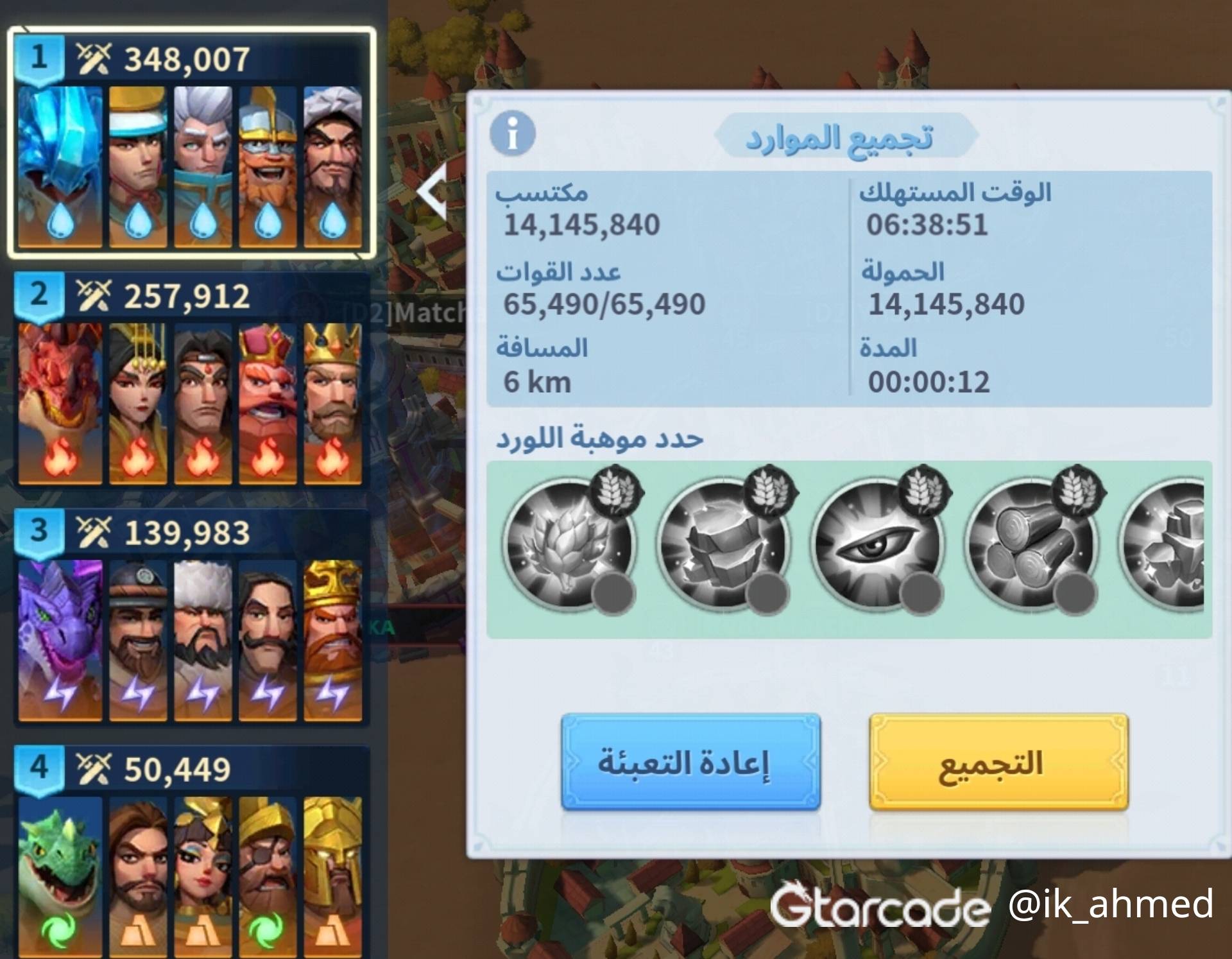 كما ترون هناك اربع انواع من الحقول لكل مورد ويمكنك الحصول عليها فى الخريطة بالكامل ويتم التجميع من هذا الحقول عن طريق المسيرات الخاصة بك ولهذا يجي عليك زيادة حمولة المسيرات الخاصة بك عن طريق زيادة عدد الجنود والأبحاث الخاص بالحمولة