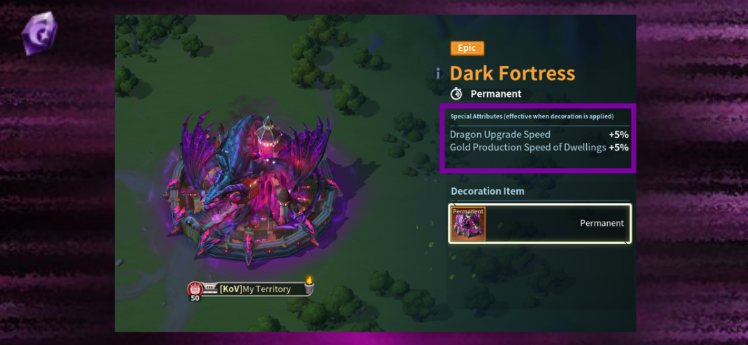 Additionally, this chest includes the Dark Fortress Castle Skin, providing a significant gold buff, the best growth boost in the game.