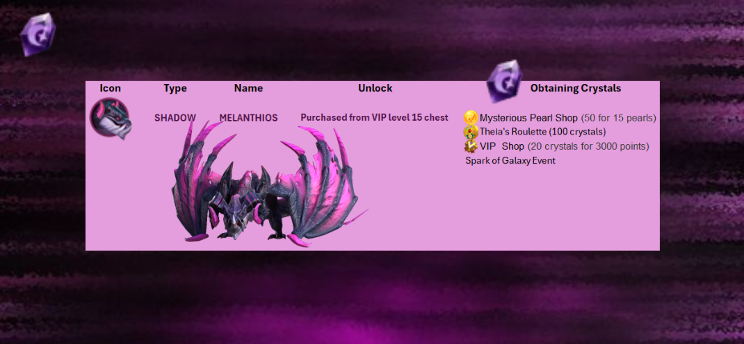 Hey everyone, it's Press Officer Mael back again! Today, I'm thrilled to unveil my latest acquisition in Infinity Kingdom: the enigmatic Shadow Dragon, Melanthios. Born from ancient myths and steeped in the darkness of legends, Melanthios is the embodiment of shadow mastery.