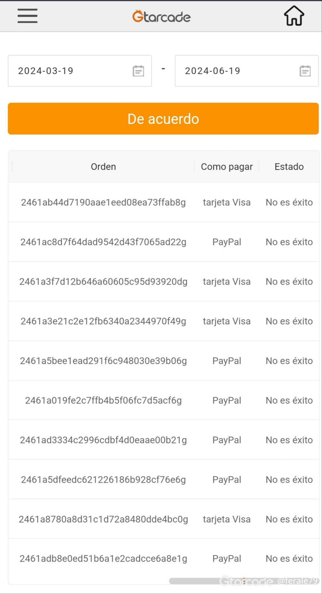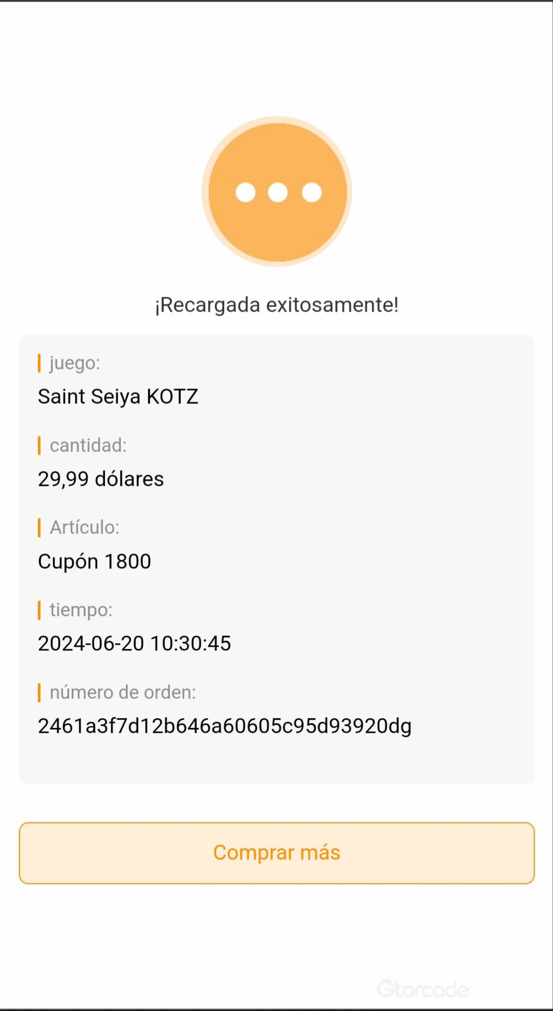 La entidad bancaria autoriza el pagó y Gtarcade lo rechazo no puedo comprar cupones