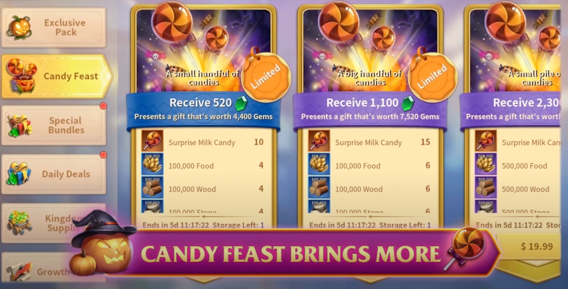 There will be 2 types of packs available for purchase during this event: Exclusive Packs, and Candy Feast packs. The Exclusive Pack can be purchased in 3 different tiers. Each of these tiers will include a limited cosmetic item. The Candy Feat packs will resemble the normal Special Bundles except they come with Surprise Milk Candy which can be used to send limited cosmetic items to your friends!