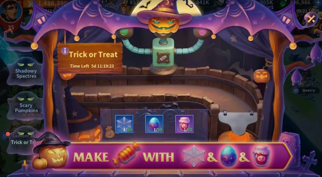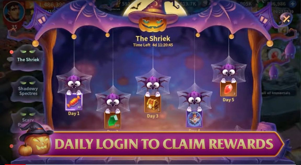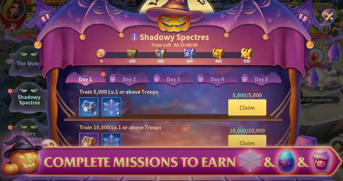 New missions will be unlocked each day of the event. Complete these missions to obtain ingredients to craft Strange Candies (Raspberry Jam, Spider Webs, and Birdie Eggs) which can be used to send gifts to your friends! Get points for every mission completed to unlock extra rewards!