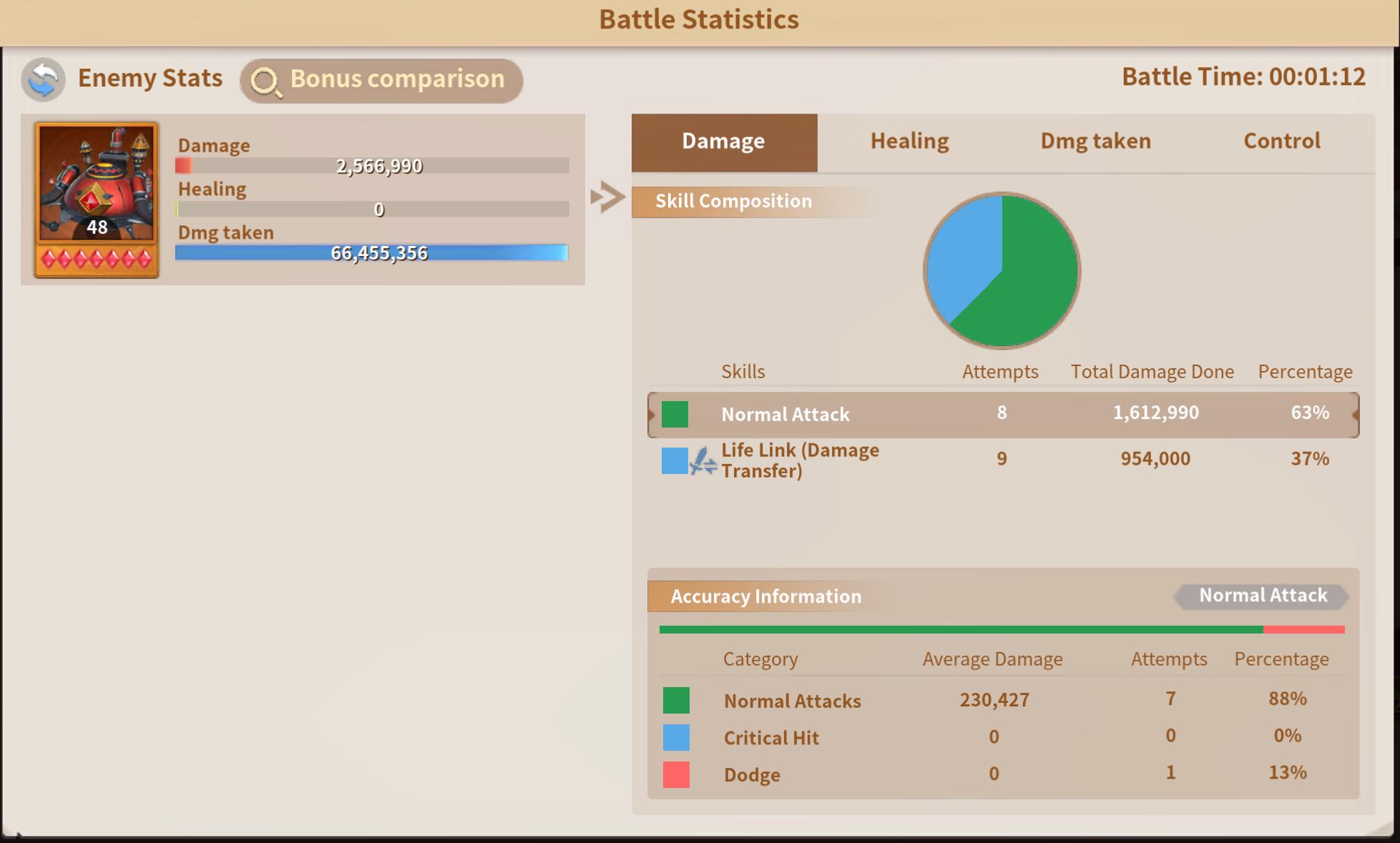 - Anger: Increases damage to 533% per hit. If the target's HP is below 50%, it deals 50% more damage, totalling 2079% over three hits.
