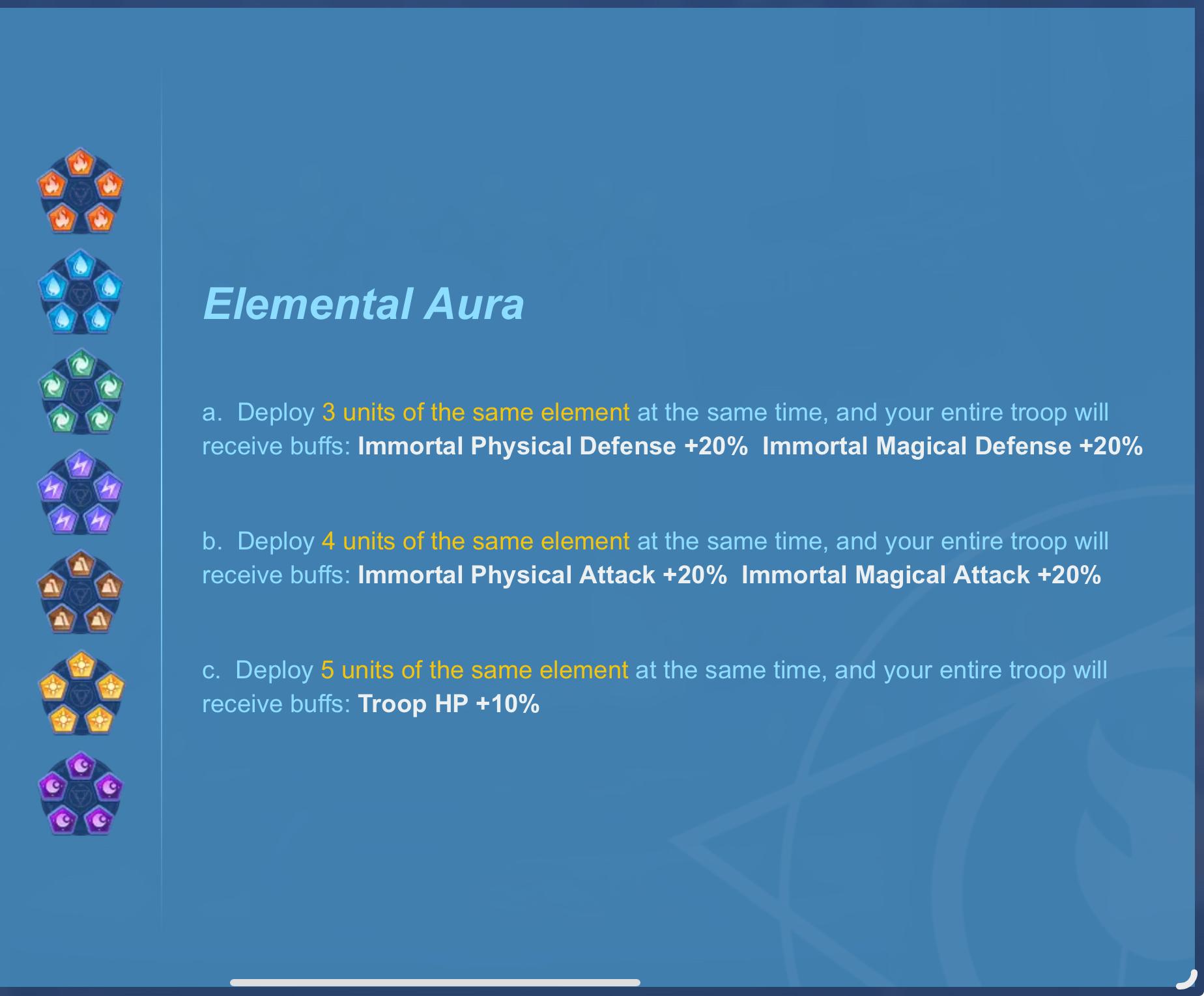 Elemental Synergy: Matching Immortals of the same element boosts your elemental power, granting extra bonuses.