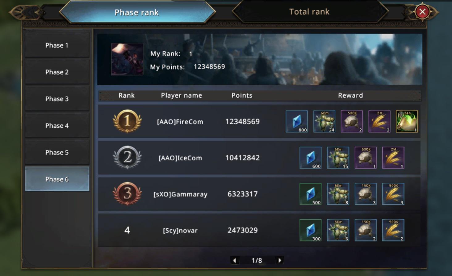 In Part 1, I went through Phases 1 through 5, where I spent most of the event outside the top 10. But after dumping a ton of resources and speed-ups in Phase 5, I finally got both accounts in the top 10 total rankings. Still not in the top 3, but getting close.