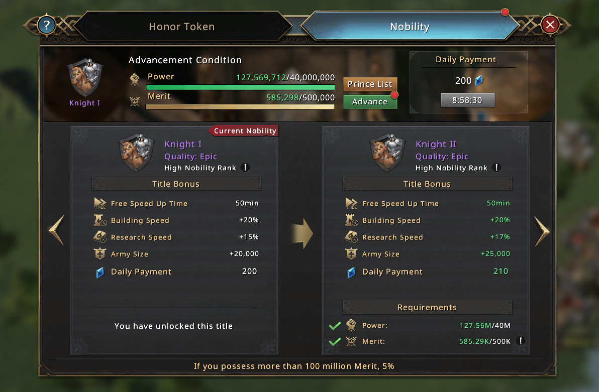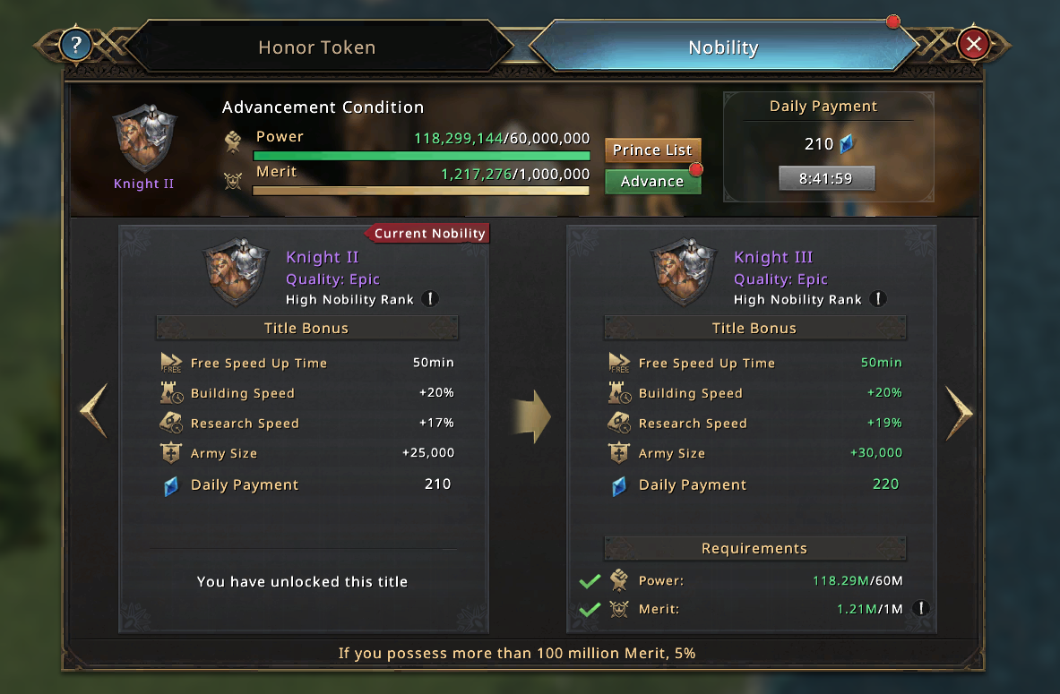 Not only did I find a good target, but I also ranked up my Nobility! That's awesome and worth it. Time to heal and update my preset. I've got an extra 5k army size from my new Nobility rank now.🙌