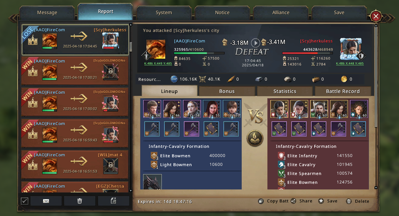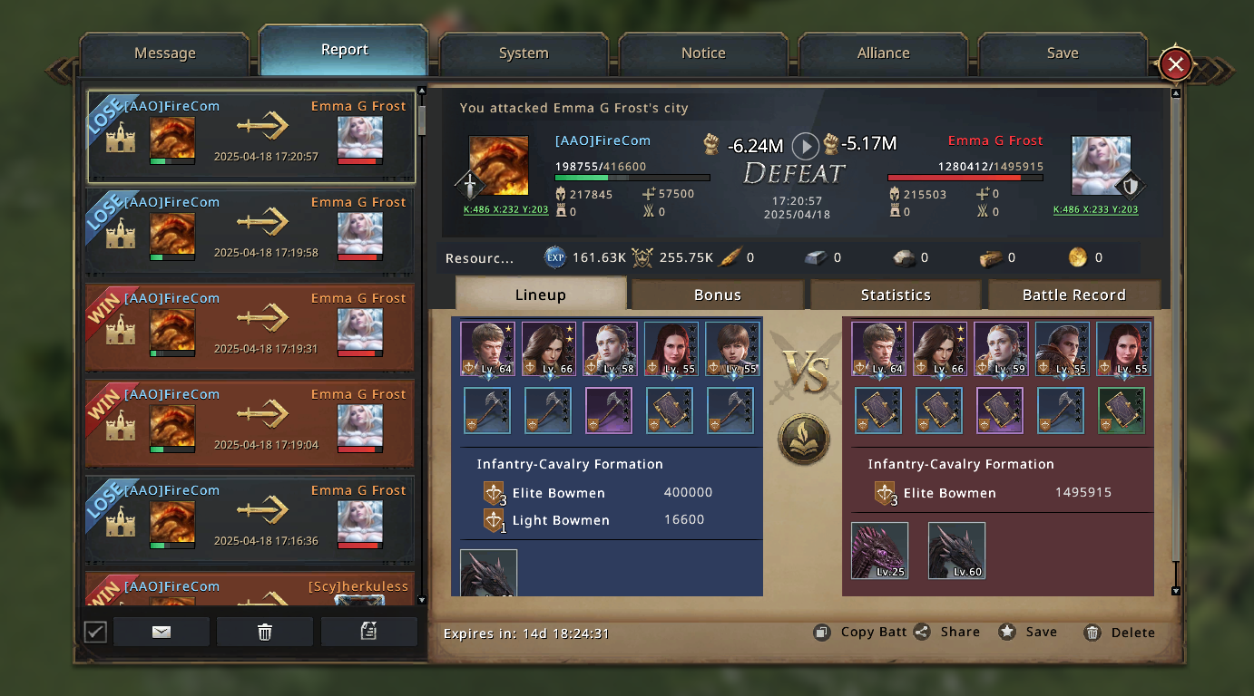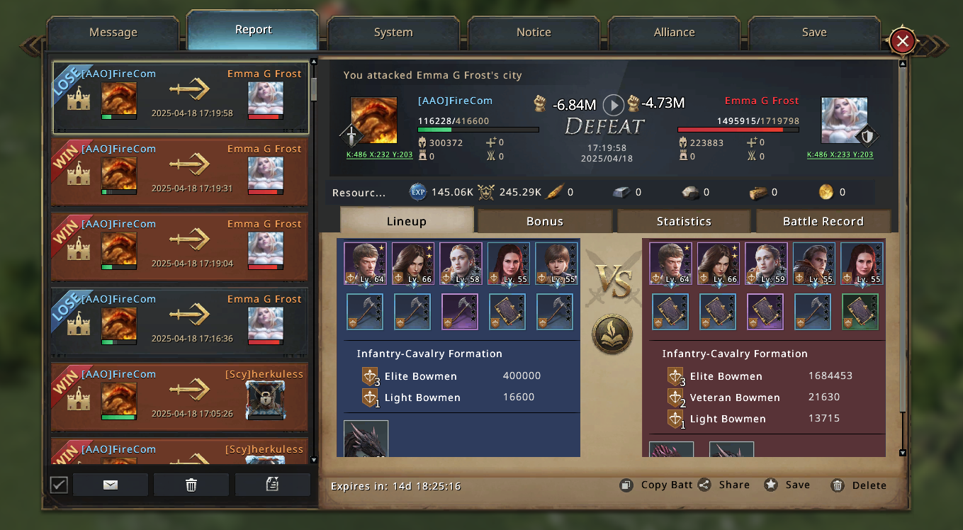I send the final march and find only T3 Bows on their side. More of my troops dead. The report's no better than the last, and deep down, I know it's over, that was my last try.