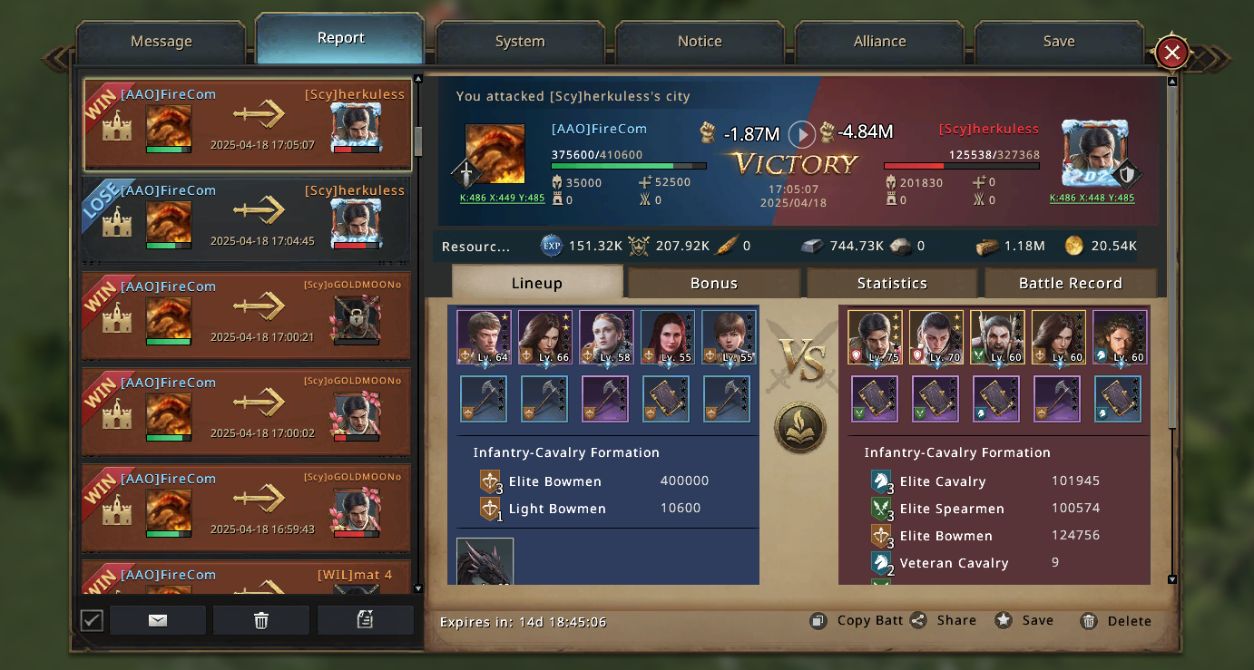 But honestly it feels like a loss. I killed fewer troops, lost just as many as the previous hit, and the whole thing felt way messier than the first fight. That previous "Defeat" sucked less than this “Victory.”