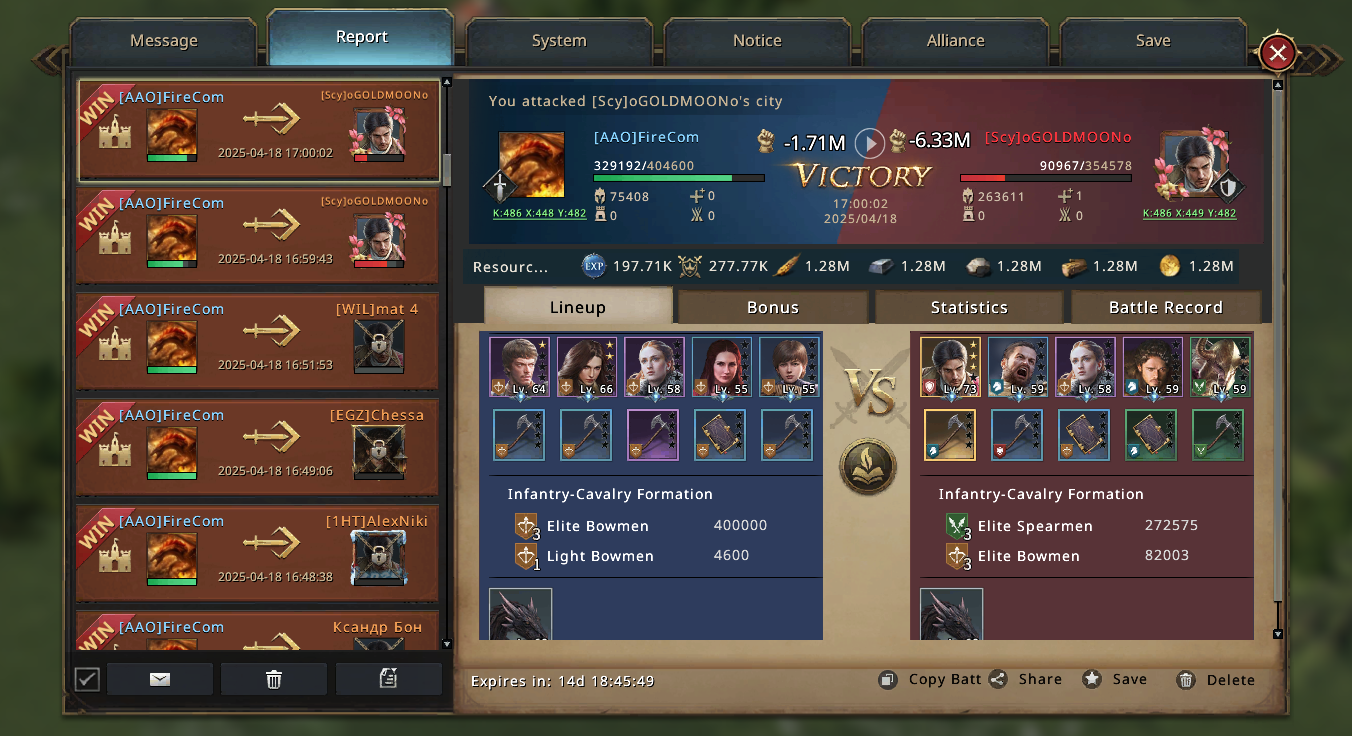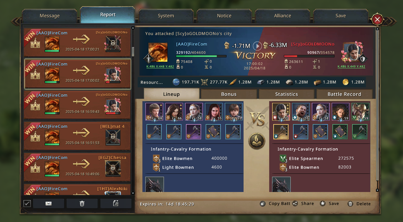 At this point, I barely have enough troops for one last attack. I've lost over 1 million T3 Bows since I started this rampage and most of them in these last 3 hits. Maybe that’s not a big number for big accounts, but for my little champion here? That’s huge! That’s months of training, gone in the blaze of glory.