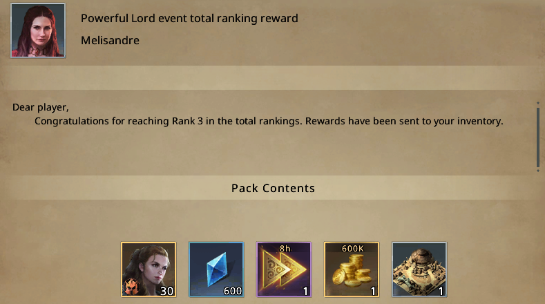 And speaking of LoL being over, the next day I get this nice mail with 30 Sabrina tokens. Soon she will be blue and grant me even more army size in the Tavern. As f2p these things add up and count a lot.