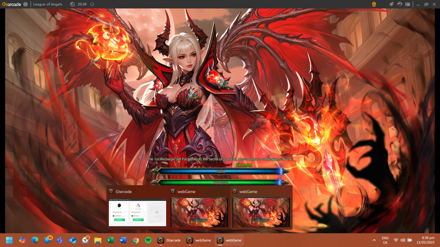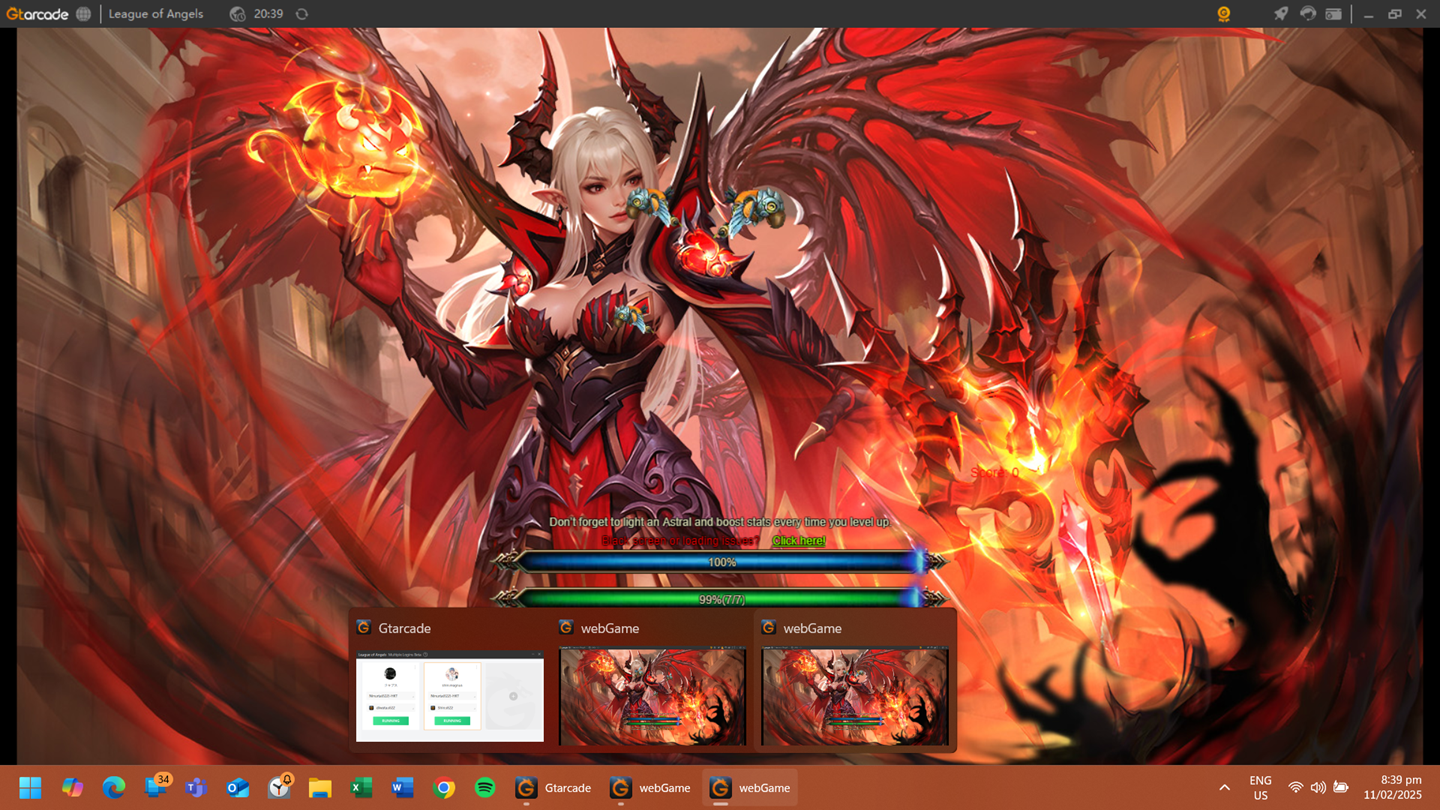Just like yesterday the (my) game stuck at the loading page for several minutes. This time, after several tries it gave me a black screen. My other toon have the same issue.