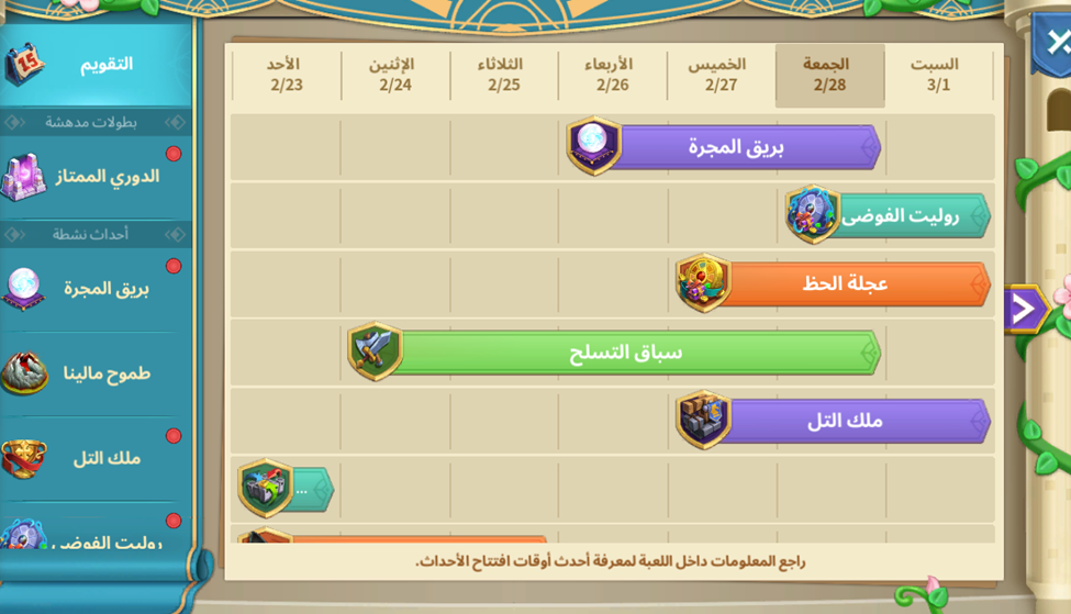 - شارك في الأحداث الأسبوعية التي تمنحك شظايا أبطال، ذهب، وعناصر نادرة