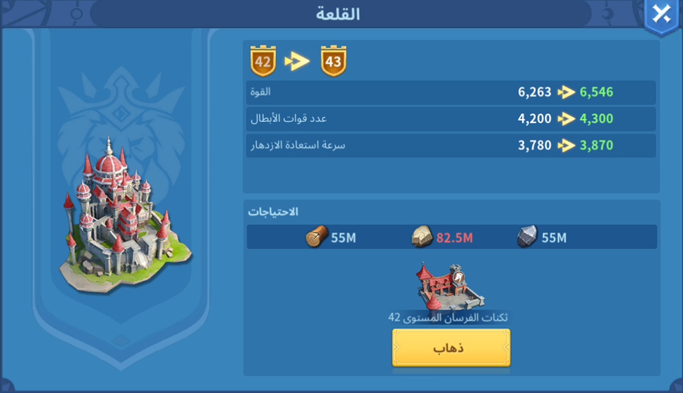 - لا تهمل مستوى القلعة، لأنه يؤثر على تطور باقي المباني