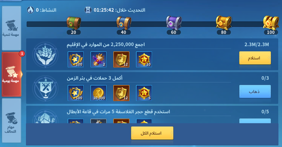 - قم بإكمال المهام اليومية للحصول على موارد مجانية