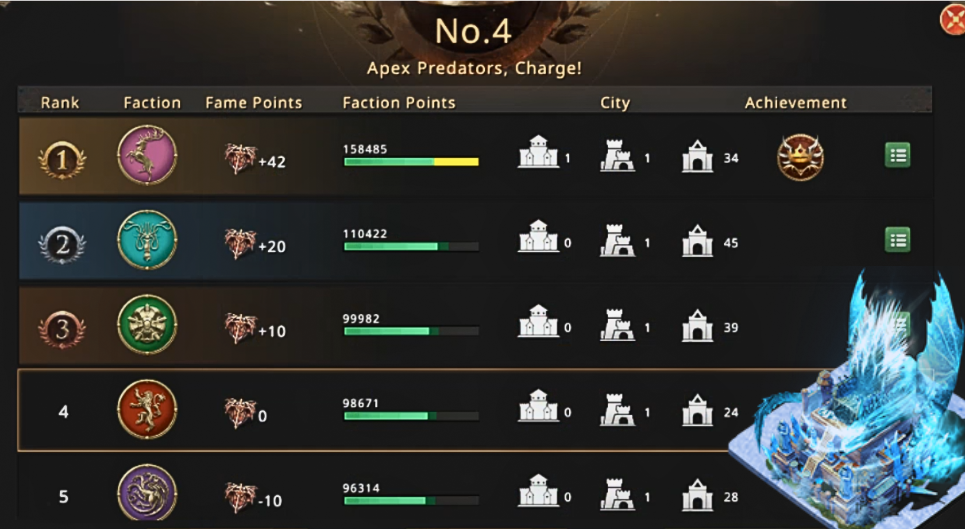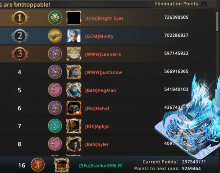 With less than 8 minutes to go, we had a 4k point advantage over the 4th placed house Tyrell and it was only necessary to manage to keep our castles.