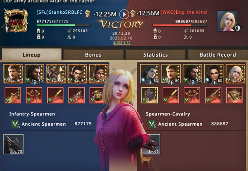 The match started and everyone went to the Strongholds so that we could finish them as soon as possible and get points. Already at the beginning, Stanko had a problem because instead of the agreed cavalry player, the newest infantry player joined our clan. Immediately there was a rebellion in the team, which disturbed our plan a little at the start, but Stanko quickly solved the problem and decided to leave the infantry players in the Clan. We decided on trading posts because they brought the most points. But for that we needed Maidens, more precisely 3 because they brought 50% extra points. But before Maiden there was an attack on Strangers. The goal was to conquer us, and that's when Stanko ordered Ches 2, as the strongest cavalry player, to occupy it while Demon and Git will try to conquer the opponent's. Stanko quickly sent spearmen to the Demon because the opponent had already started attacking him. Stanko managed to arrive on time, but it wasn't enough to defend against a strong infantry player, so we only stayed on one Altar before the start of Maiden.