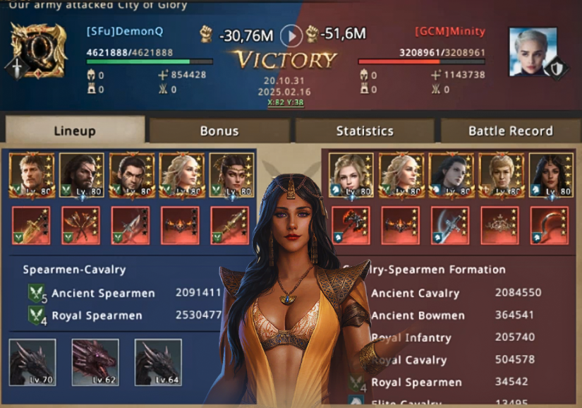 The plan was for Ches 2 to hit him first and make it significantly easier for Demon to attack with spearmen. We managed to do that in the collision of two strong cavalry players, Minity managed to win, but after suffering great losses, which could not be compensated for only 5 seconds until the attack of DemonQ, who was more numerous and managed to capture Glory.