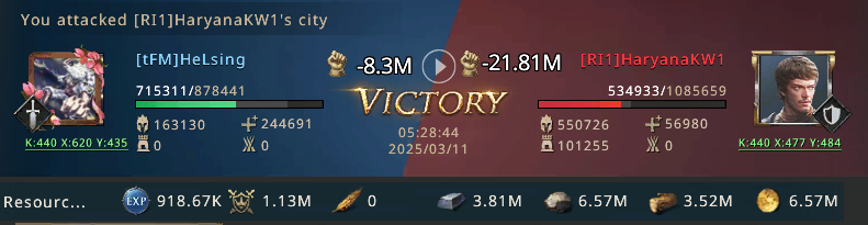First attack was very brutal as both sides faced losses but lord Helsing didn't stop here and went for 2nd attack which was very benficial for him as haryana's hospital was filled and was a very good fight.