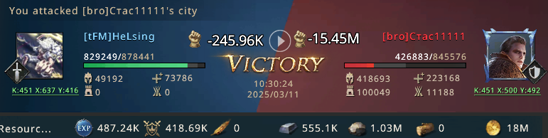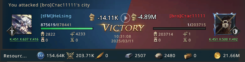 The frozen winds howled across the lands of Westeros. In the vast and dangerous world of "Game of Thrones: Winter is Coming," . Lord Helsing after his last Invastion from the merit hunt went back to his home kingdom to take part in great seige of winterfell, and to help his house members to become victorious in the upcoming seige of winterfell. This seige was also very important to the House TFM,as this was the starting match of Super league. Super leage also meant greater and stronger opponents, So in order to become victorious in this Seige. Lord Helsing started his preparation for this Seige of winterfell. In this course of events Lord helsing didn't forget his goal of acheiving 25 mil merit points. So during registration period Lord Helsing was constantly searching for targets. The efforts and his constant searching bore fruit of success and he found targets in Kingdom 451. This server was dominated by the "House FULL ". This alliance was not that proactive in war or Pvp matches so many were unbubbled So after seige of winterfell second match Lord Helisng jumped to that kingdom. The Kingdoms had long known war and treachery. But none were prepared for the chaos that would ensue when the forces of the mighty Lord Helsing declared an invasion on Server 451.But the dominating alliance leader after seing Lord Helsing immediately build Defence tower and bubbled his team members Castles and raised a slogon to be under bubble.