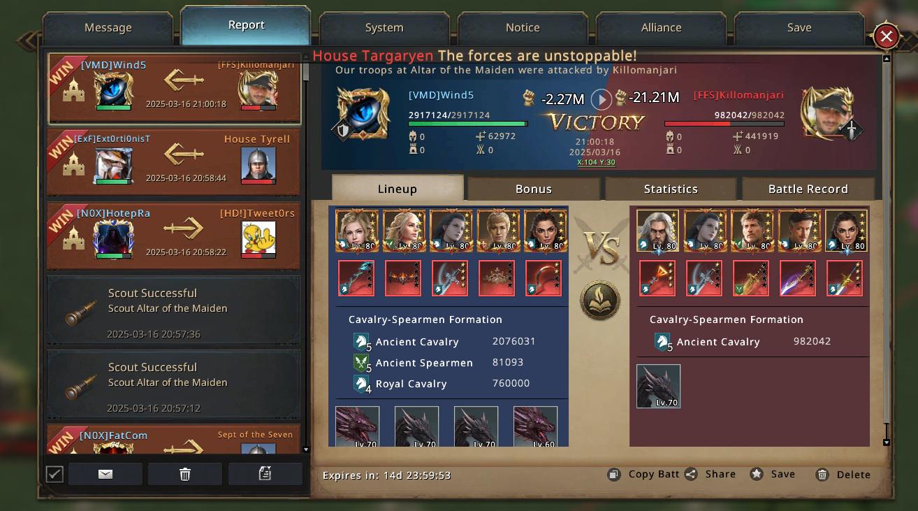 If I thought Wind was strong without a lord march, just look at this hit we defend with his main march. Insane stats on this guy; I’m glad he’s on my team, hehe. I'm sure Hotep is envious but his account will catch up soon.