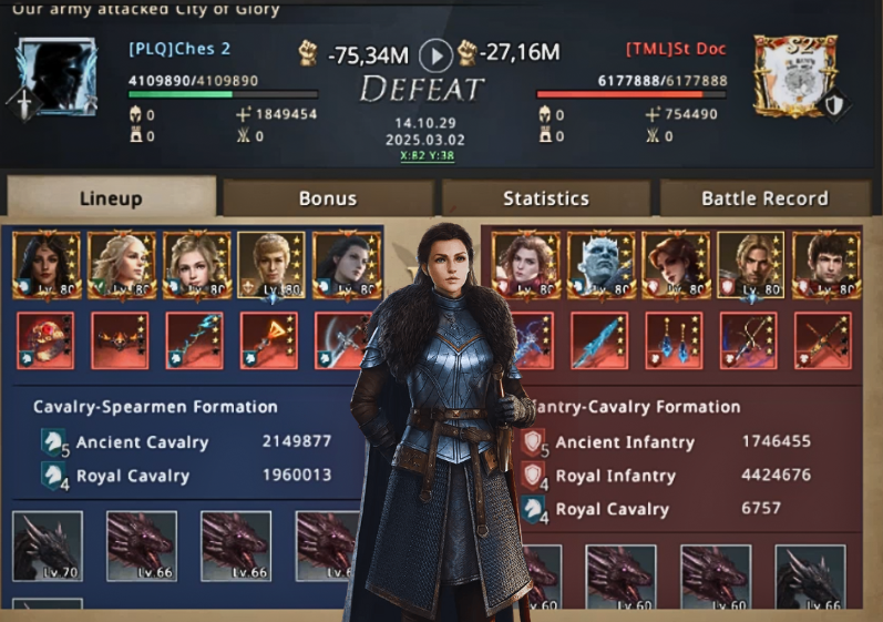 Stanko asked to speed up and send all the cavalry as soon as possible because it was our last chance. The attack began. We hoped that someone else would attack before us and thus reduce the number of the army in Glory, but we were alone and it seemed that everyone had already given up on the idea that they could expel the Lannisters from Glory. Still, 4m, of which over 3m were T5, was not enough to defeat an opponent.