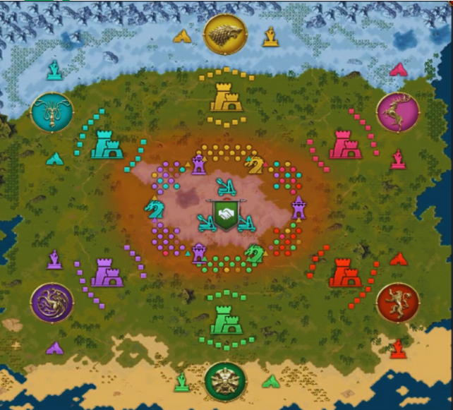 Glory started and we had to be as efficient as possible. The goal was for Ches 2 to attack Glory with an attack and take it immediately, but the Lannister house spoiled our plans and they immediately managed to conquer it with a solo attack. Stanko ordered a double rally of our strongest Infantry player and Ches 2.