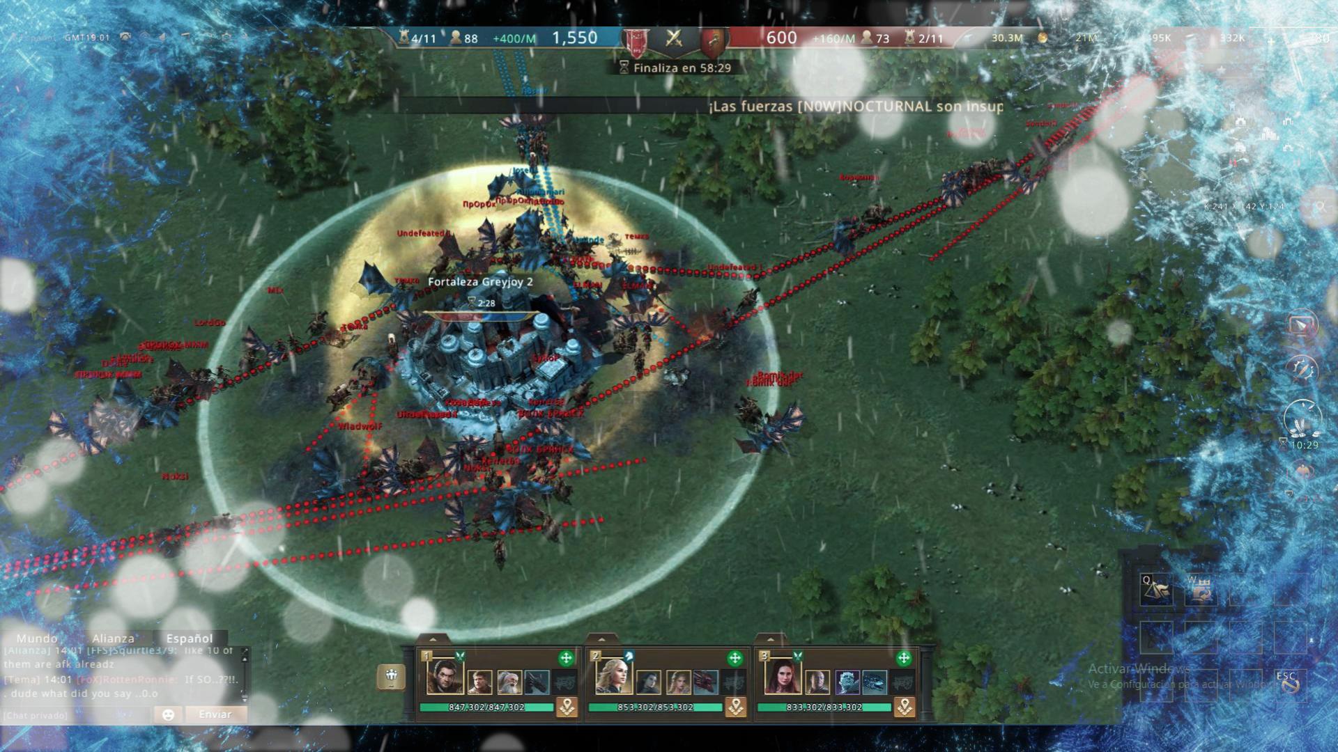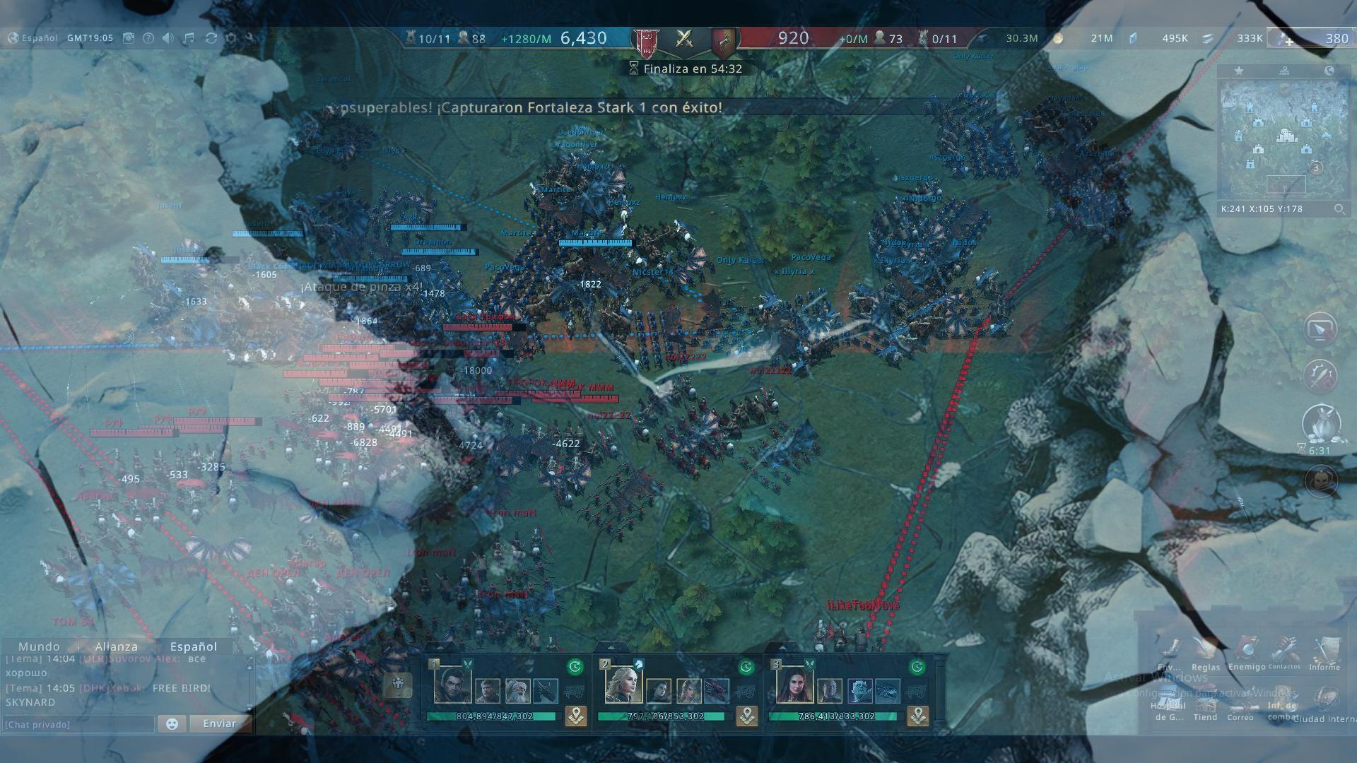 After six minutes of battle the allied forces had taken control of the right side of the map and were already besieging the base from where the NOW marches were leaving, the left side still had a fortress flashing, but it would not take long to be taken since only eight red marches remained standing; seven minutes were enough for the map to be completely blue, now there was only one task left to accomplish and that was to carry out the transports of the Winterfell pocket, since there were no enemy marches to oppose them only the march speed was essential.