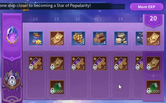 To increase the level of the pass, there are 8 missions a day that players can complete for 50 EXP each. Every level requires 150 EXP. To get to level 30, you will need 4,500 EXP or about 90 tasks. Throughout 15 days, there will be a total of 120 tasks so you can skip 30 tasks and still be able to complete the entire battle pass. The tasks range from simple ones like buying from the market to tasks that require more planning like completing a Dazzling Wish Draw. You may not always have Tokens of Light so plan accordingly and try to save enough to draw once a day.