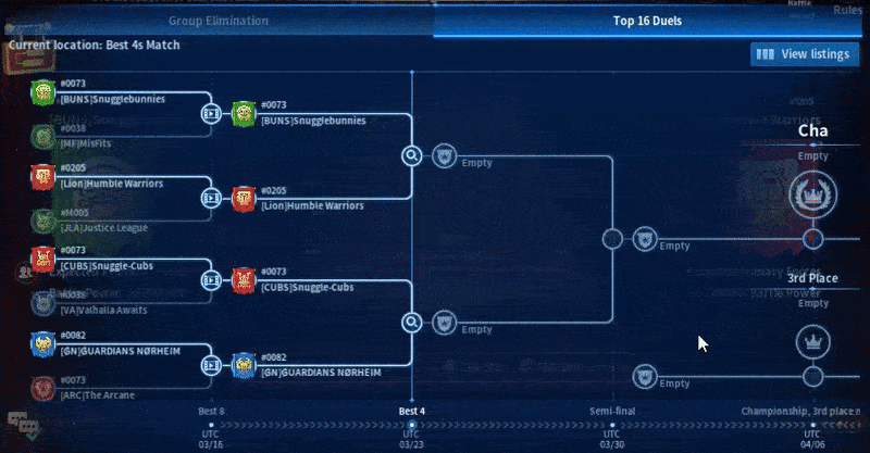 The first round of the Top 16 Duels came and went. Server 38 and 73 had 5 and 4 teams qualified going into the weekend and matched in 3 out of the 8 possible matchups. In the best way possible, many of the other servers were matched up against each other to provide the most diverse set of battles.