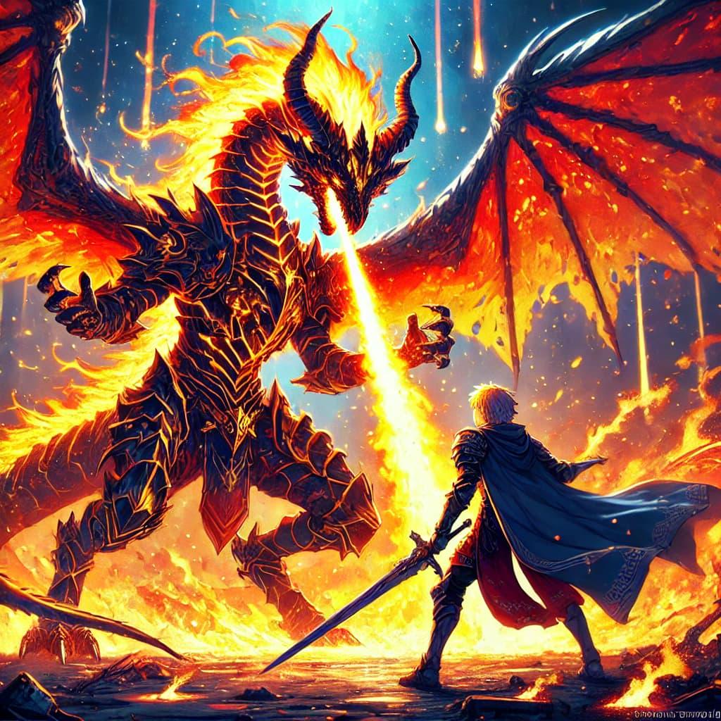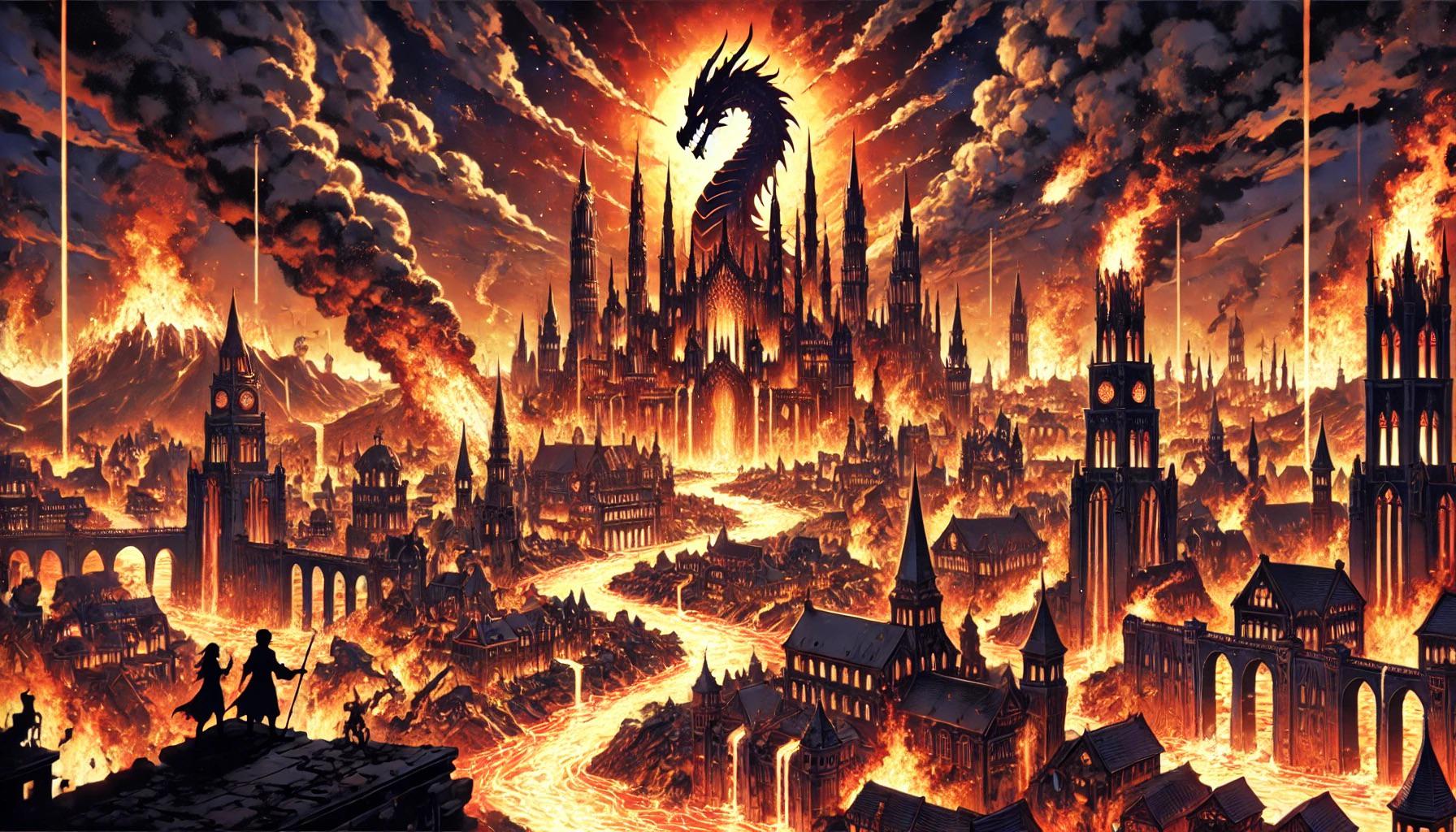 With a roar that shook the mountains and shattered fragile alliances, he descended like a fiery comet, his incandescent scales blazing against the night sky. His breath, a maelstrom of molten ruin, engulfed fortresses in infernal pyres, reducing once-great kingdoms to nothing more than smoking relics of bad tactical decisions.