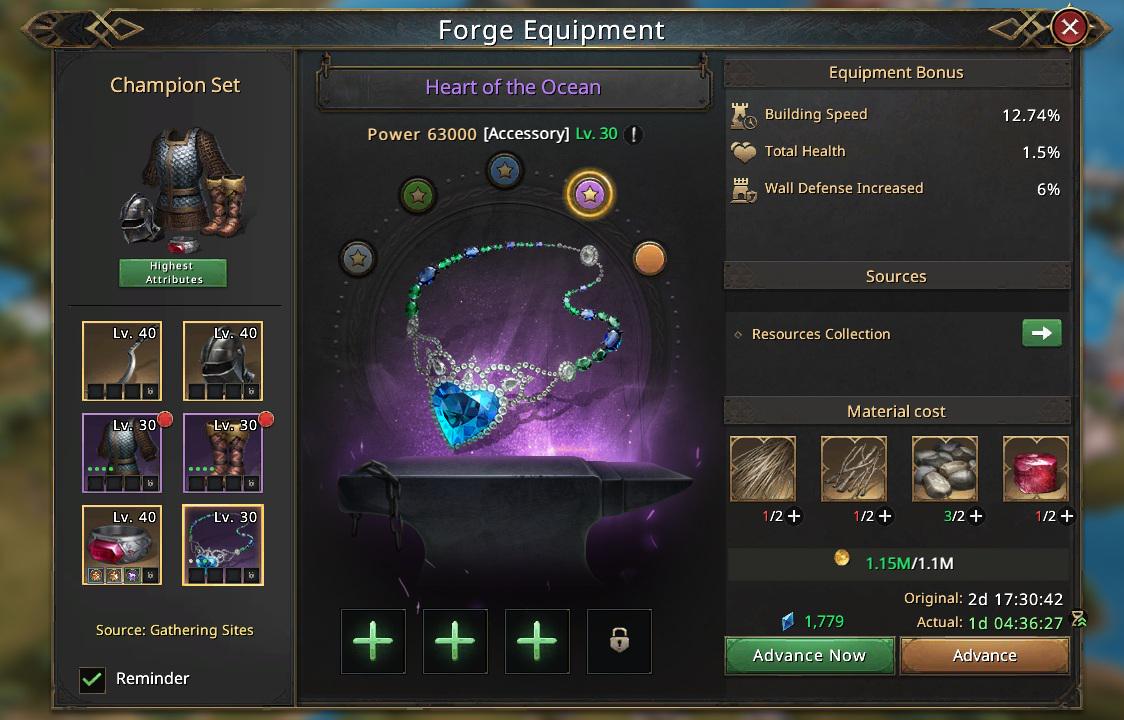 With LoL coming up, I’m already planning my steps. I take a quick look on kingdom to scan any competition and anticipate potential threats. I’ve started and timed some buildings and research for Day 2, but my speedups are running low. Worse, I’ve been slacking on gathering. Not only am I low on resources but I don't even have enough materials to finish upgrading my Champion’s Set. Woops :D