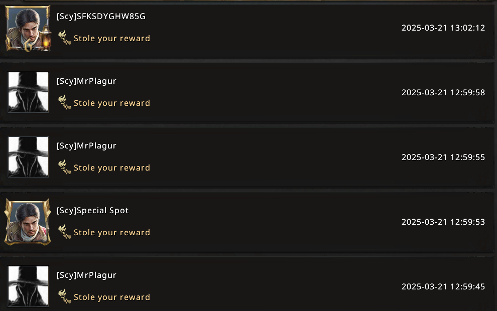 They’ve made it clear they're upset through petty acts like not allowing me to get PO buffs, plundering my Day of Trade caravans and Bounty Operations. Even trying to snipe the Alpacas I was attacking for the Anniversary event. It’s obvious they want me to force me to either rejoin them or leave the server entirely.