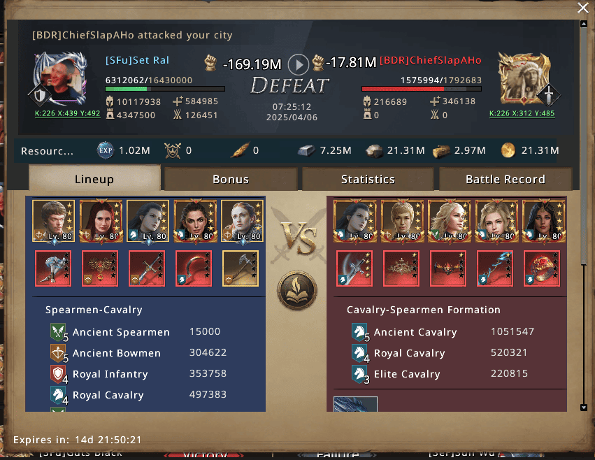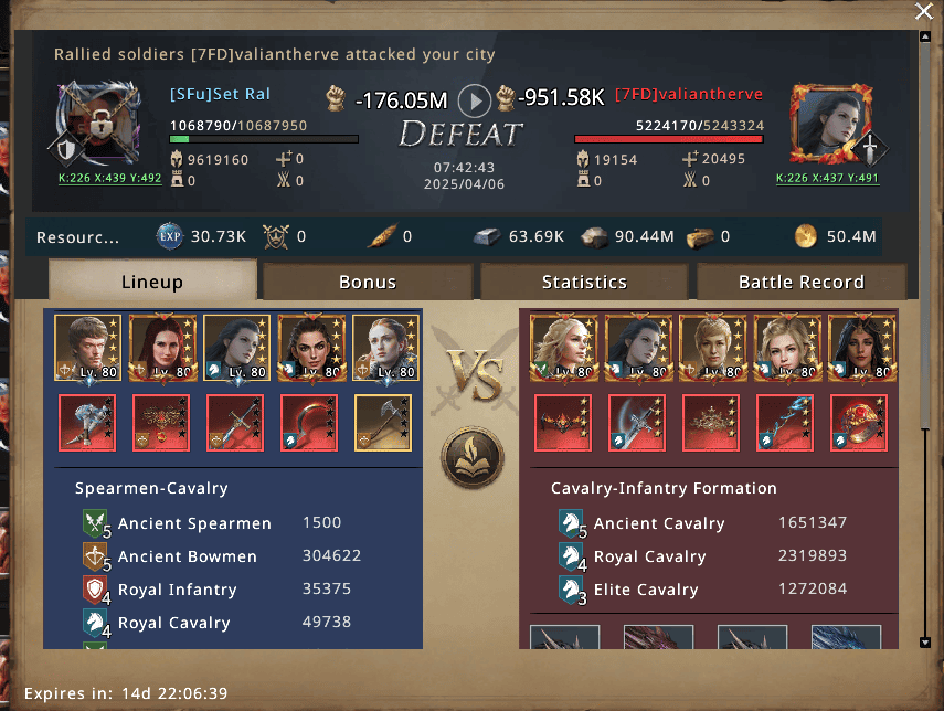 As the event began, most players sent their troops out to gather resources, hoping for personal points. Lux, already preparing for bed, did the same. But when she returned to the game the next morning, she quickly realized what she had missed. Her good friend, Set Ral, a bow player, was the first to be attacked by a BDR player. He was zeroed in an instant. Set Ral had a solid defense, so Lux was shocked to see him fall so quickly. She went to check the battle report and was left speechless. The BDR player had managed to solo kill Set’s entire bow army and capture his lord. For context, Set was using full female synergy, supported by Cersei, and had a strong defense. What had happened?